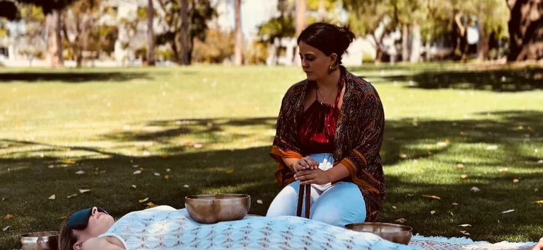 Lasse dich von sanften Berührungen und den harmonischen Klängen der Klangschalen in einen Zustand der Entspannung versetzen.